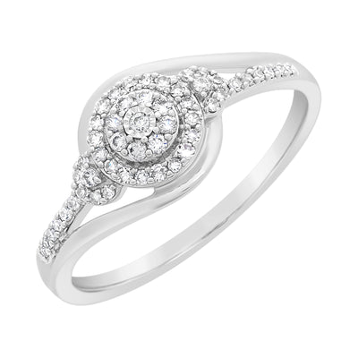 9Ct White Gold 0.18Ct Diamond Ring Size O