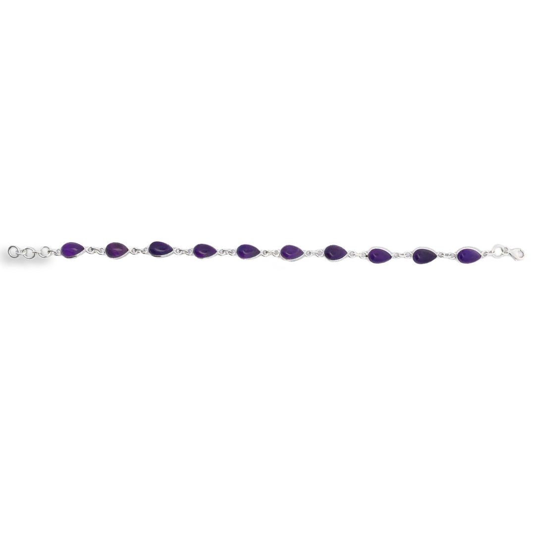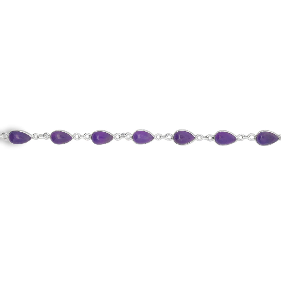 Onatah Sterling Silver Pear Shaped Cabochon Amethyst Bracelet With Parrot Clasp 18Cm And 3Cm Ext