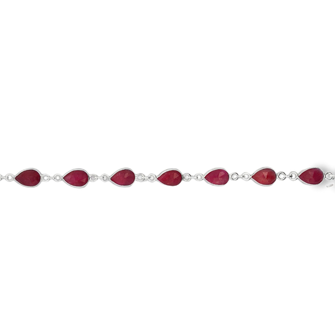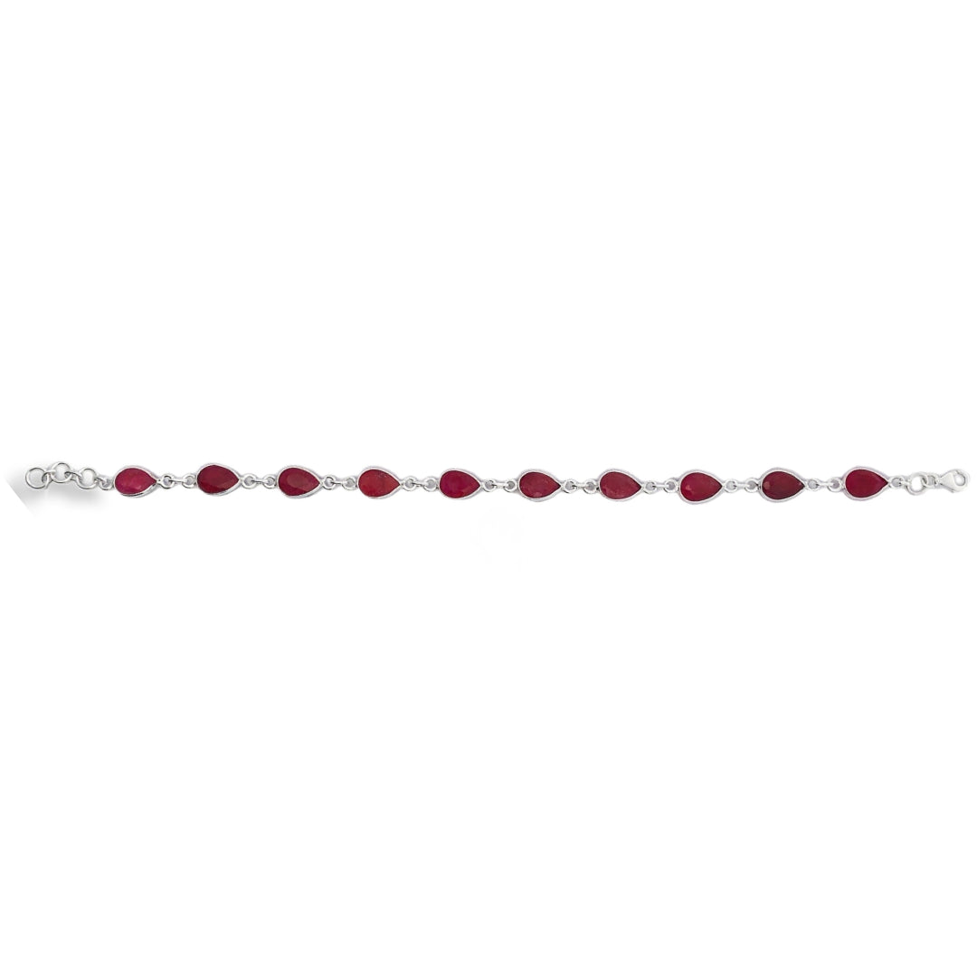 Onatah Sterling Silver Pear Shaped Treated Ruby Bracelet With Parrot Clasp 18Cm And 3Cm Ext