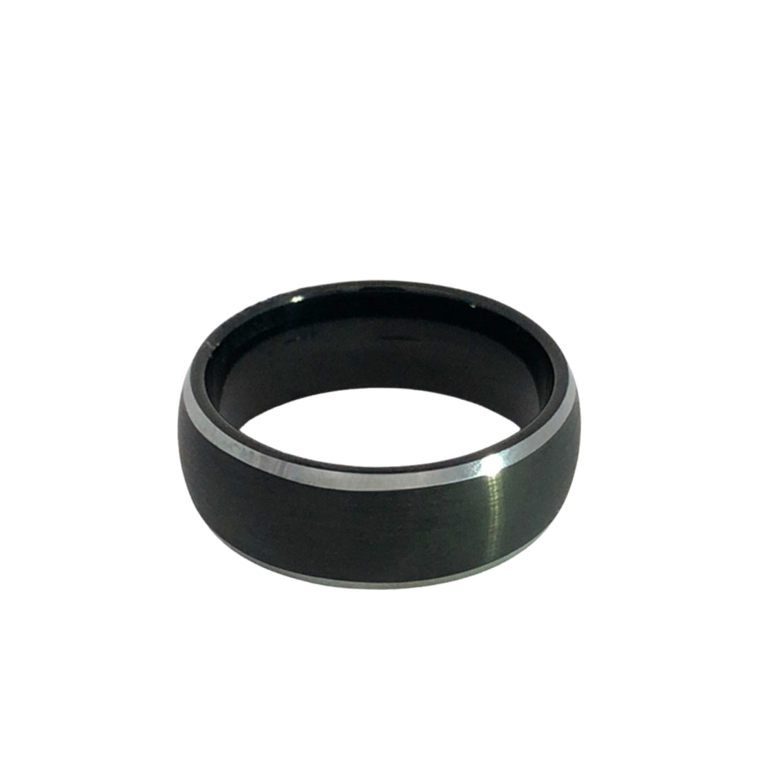 Tungsten Carbide Black Ion Plated Polished Silver Outer Edges Ring Size 10