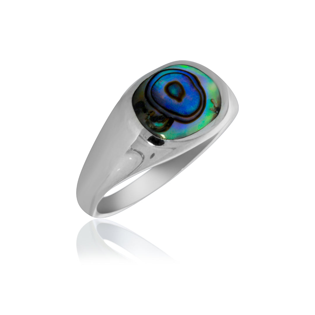 Silver Oval Paua Signet Ring