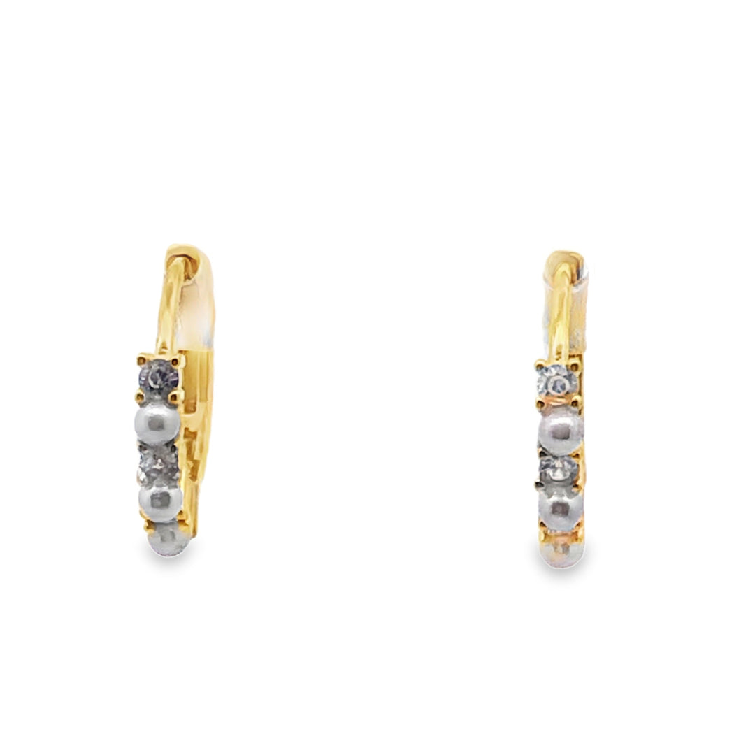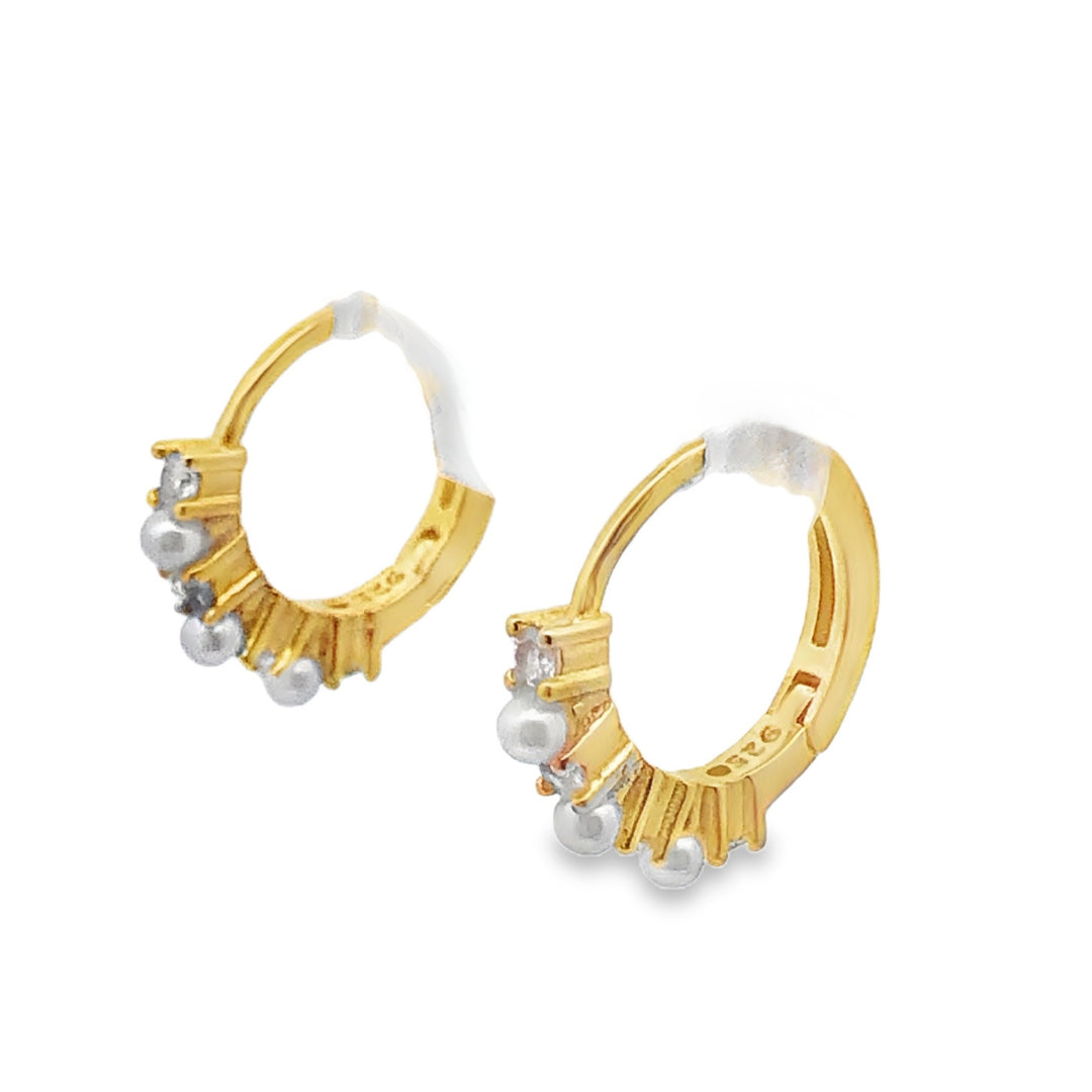 Lustra Sterling Silver Gold Plated Shell Pearl And Cz Set Huggie Earrings