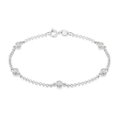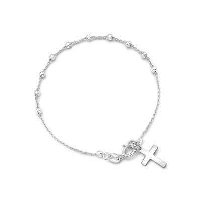 Rhodiumed Sterling Silver Rosary Bracelet 18Cm