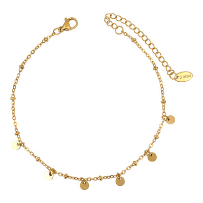Stainless Steel Gold Plated Adjustable Disc Anklet 20-25Cm
