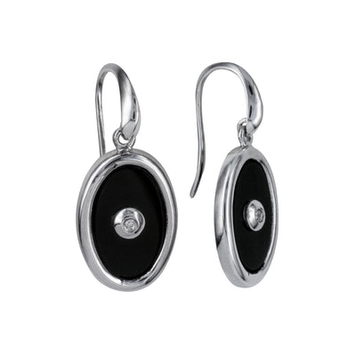 Sterling Silver Oval Onyx And Cz Enhancer Pendany