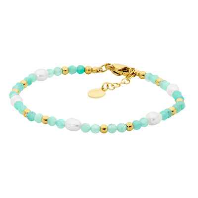 Stainless Steel Gold IP Plated Amazonite & Freshwater Pea...