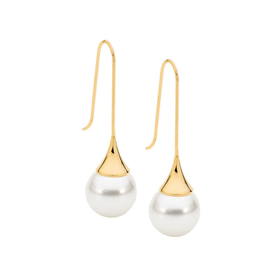 Stainless Steel Gold IP Plated Shell Pearl Drop Earrings