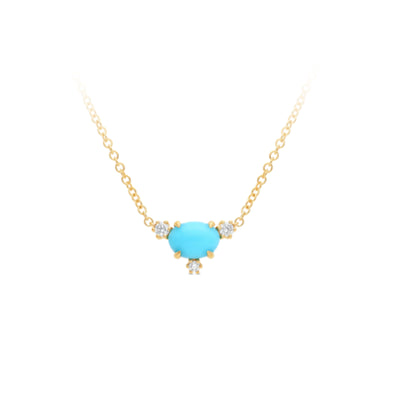 9K Yellow Gold Oval Turquoise & Lab Grown Diamond Necklet...