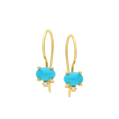 9K Yellow Gold Oval Turquoise & Lab Grown Diamond Drop Ea...