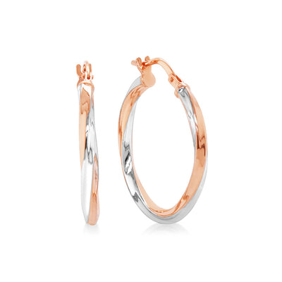 9Ct Rose Gold Silver Filled Rhodium Plated Twisted Hoop E...