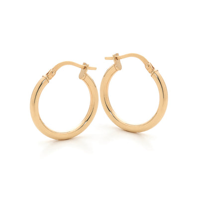 9Ct Yellow Gold Silver Filled Plain Hoop Earrings ID 14Mm