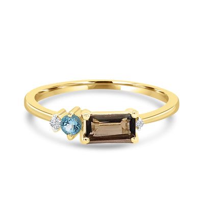 9K Yellow Gold Baguette Smokey Topaz, Round Blue Topaz & ...