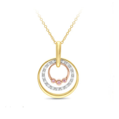 9Ct Yellow, Rose And White Gold Circle Pendant With Pink ...