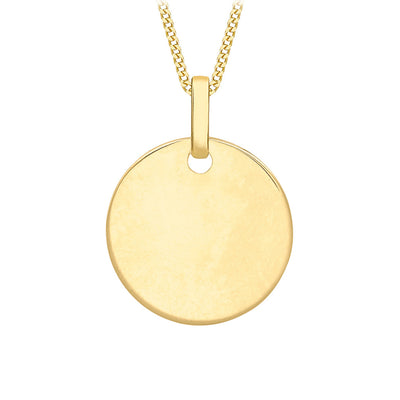 9K Yellow Gold Small Round Disc Pendant. Engravable