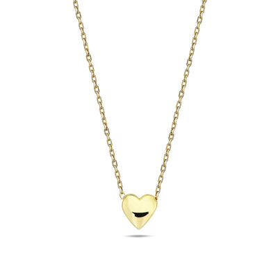 9K Yellow Gold Puff Heart Necklet 45Cm