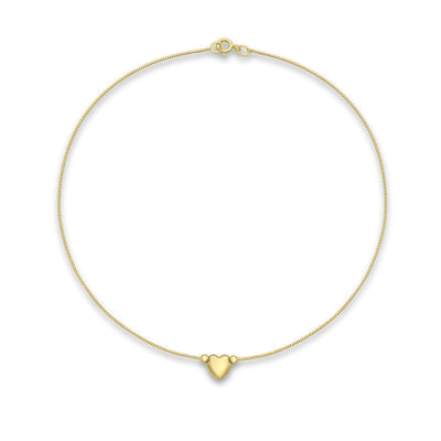 9K Yellow Gold Heart Box Chain Anklet 24Cm